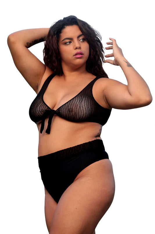 Flawless Sheer Bikini Top Wavy Black Mesh