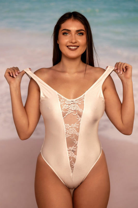 St. Tropez One Piece Thong Swimsuit – Sexy High-Cut Sheer Swimwear