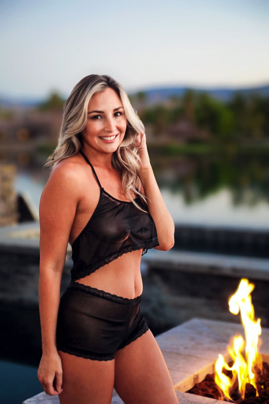 Front Tie Halter Top – Sheer Mesh Crop for Beach or Resort | Brigitewear
