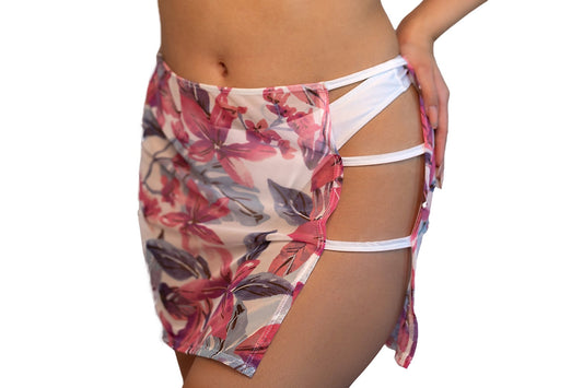 Strappy Mini Skirt – Sheer Floral Mesh Swimwear Cover-Up