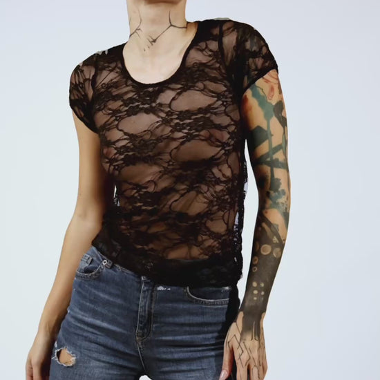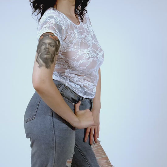 This tee features a flattering cut that skims the body and highlights your curves. The sheer lace fabric adds a hint of allure, while the long length provides coverage and creates a slimming effect. Whether paired with jeans for a casual look or a skirt for a night out, this top is sure to turn heads and make you feel confident and beautiful.